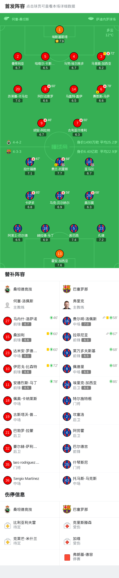 第76分钟,桑坦德竞技单刀打入一球,越位被吹罚无效