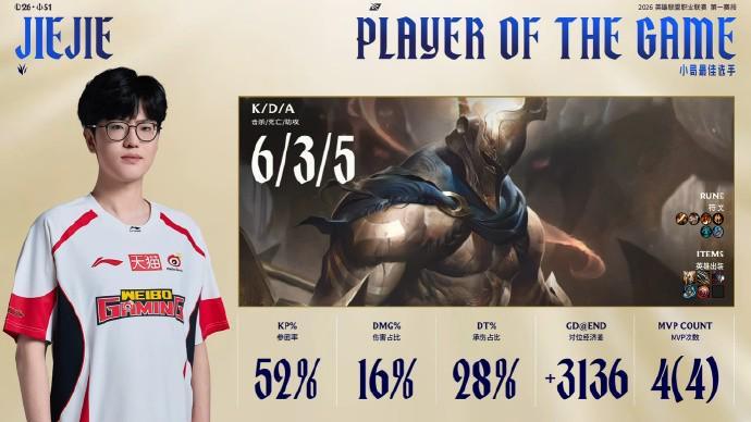 继昨天的辅助冰鸟后,今天又出场了打野狼人。第一条小龙团Jiejie狼人遭到逮捕,接下来Xiaohu也被锤石勾到击杀。但Jiejie的狼人走的是肉装路线,第三条小龙团Shanks岩雀失误挡住自家先锋撞塔,WBG拿到小龙后在野区开团,狼人大招定人后定点秒杀,WBG大获全胜。大龙刷新后WBG打出0换3开动大龙,随后又拿下火龙魂,WBG一波结束比赛,3-1战胜AL晋级败者组决赛!